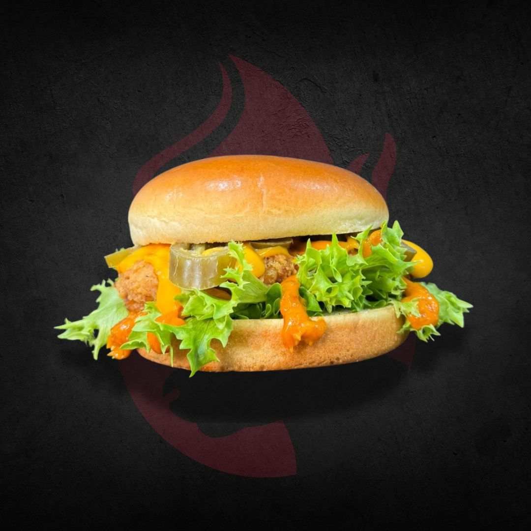 120 gm Fried Chicken Patty, Lettuce, American Cheese, Jalapenos and Bad Boy Angus Sauce. Served Brioche Bun